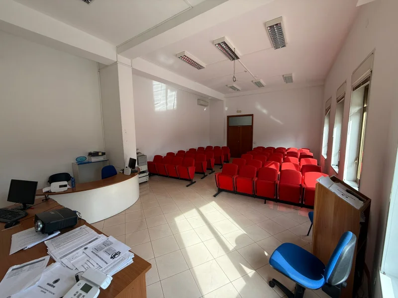 La struttura è disposta su piano terra e primo piano, situato in zona facilmente raggiungibile e ben collegata. Al piano terra si trovano un’ampia sala operativa con numerose postazioni di lavoro moderne e funzionali, oltre a una spaziosa sala conferenze ideale per riunioni, corsi di formazione e presentazioni. Il primo piano ospita una decina di uffici indipendenti, luminosi e ben organizzati, adatti ad attività direzionali, amministrative e di coordinamento. Gli ambienti sono ben distribuiti, confortevoli e progettati per garantire efficienza operativa e massima produttività.