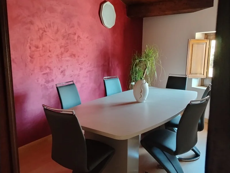 Sala riunioni molto luminosa, con ampia finestra che garantisce luce naturale per tutta la giornata. Il grande tavolo riunioni può ospitare comodamente fino a 10 persone, ideale per meeting, presentazioni e incontri professionali in un ambiente elegante, riservato e funzionale.