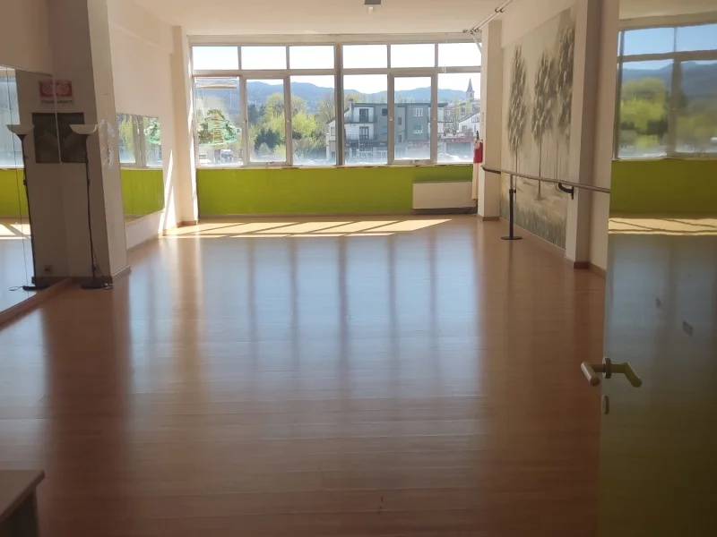 Sala polifunzionale, Luminosa con finestre Riscaldamento Pavimento parquet Specchi alti su tutto fronte Barra danza classica Disponibili piccoli attrezzi pesi,tappetini,palle piccole e grandi per yoga pilates ecc E' presente inoltre un tavolo per relatori puo ospitare 100